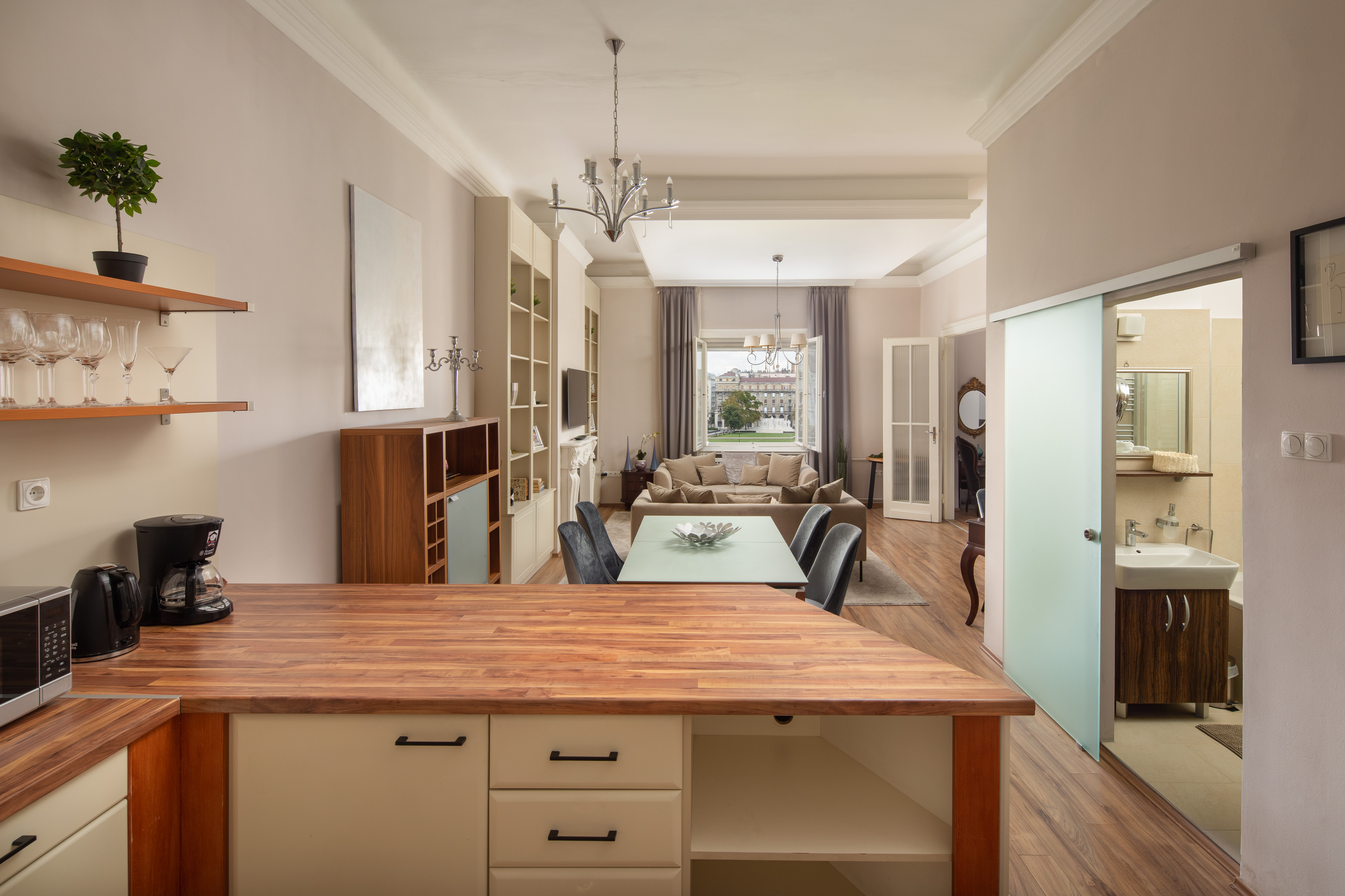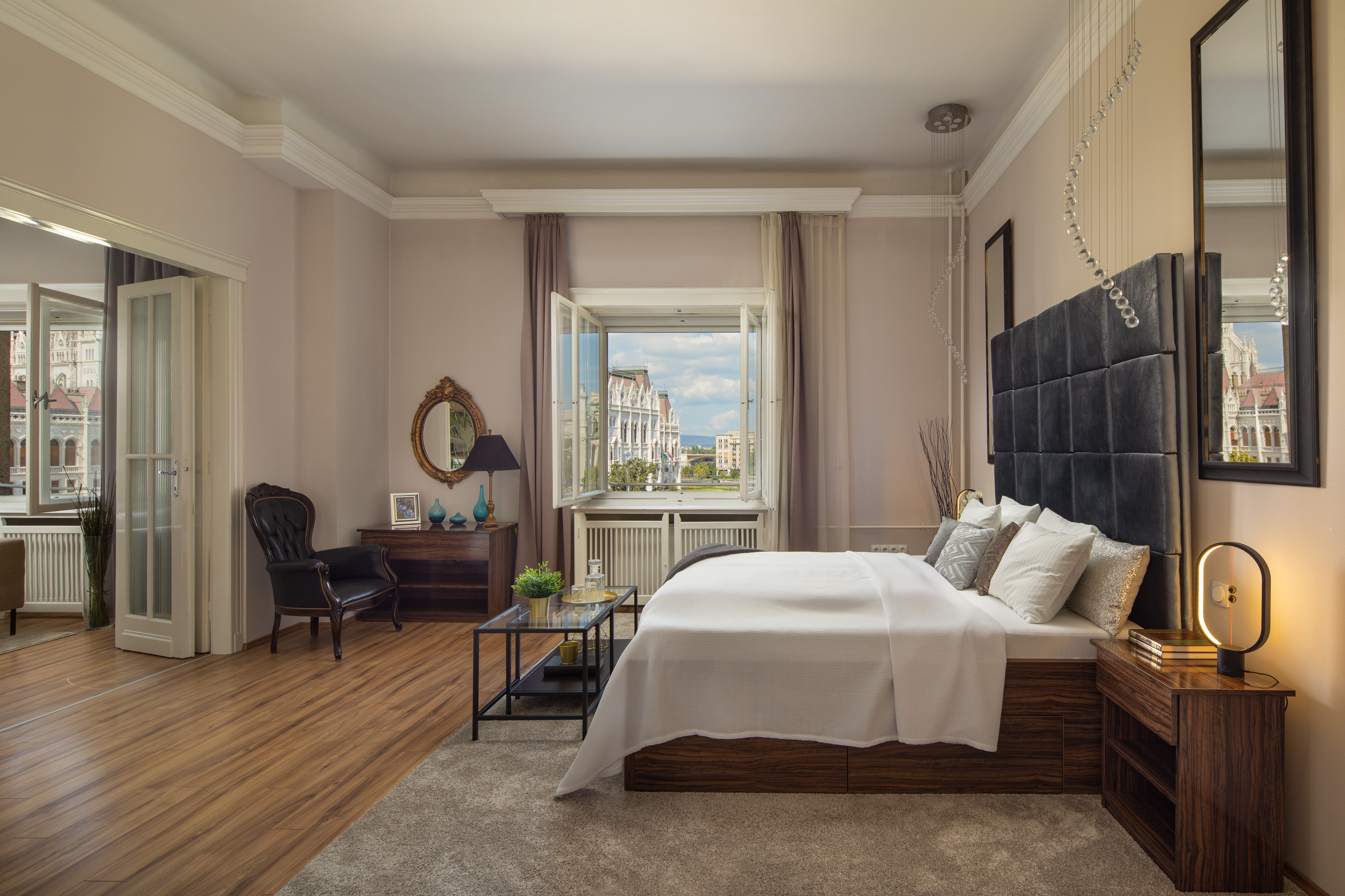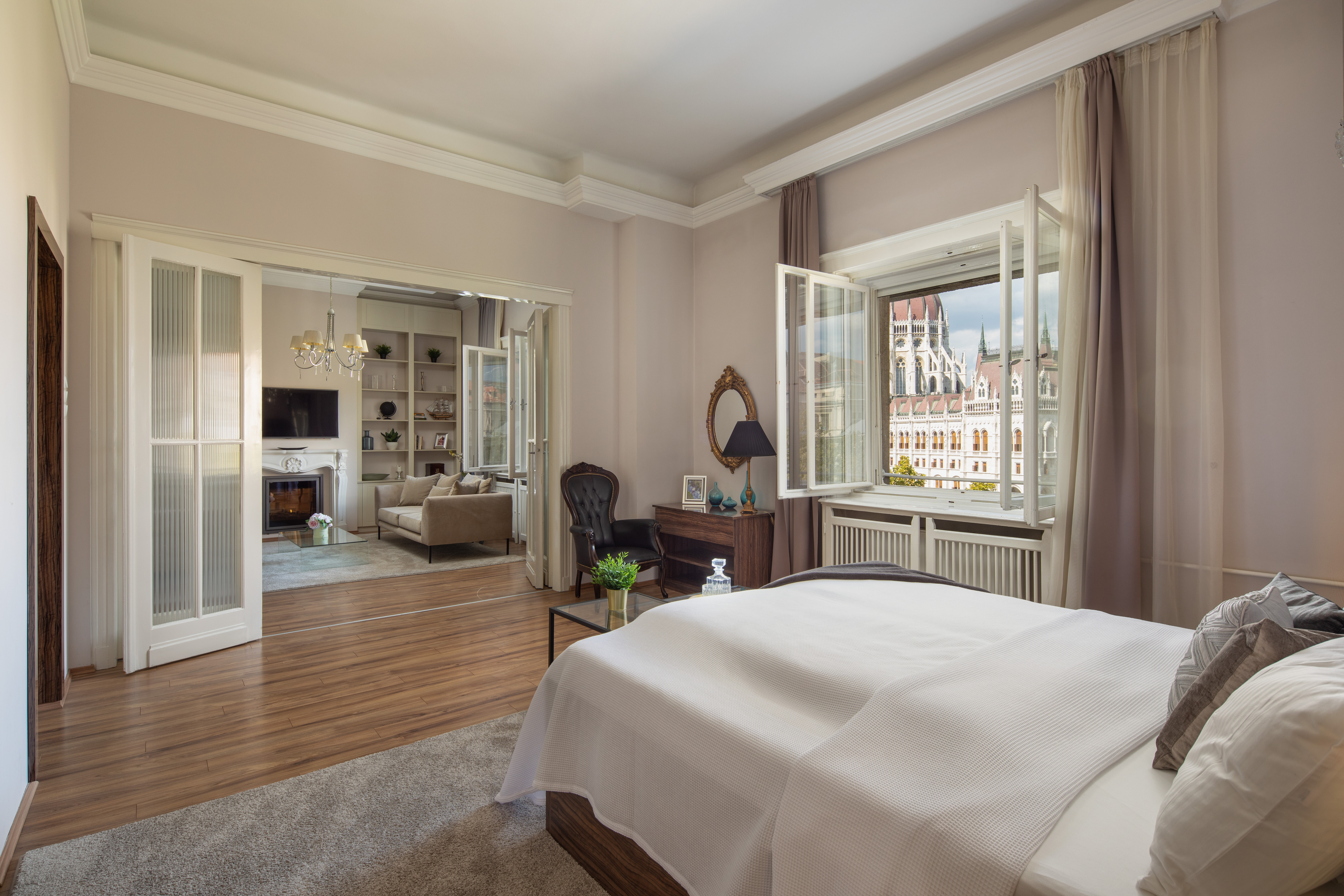 Beyond its location, the biggest attraction of the apartment is the spectacular view that can be enjoyed from the living room as well as from the master bedroom. While drinking your morning coffee or having a glass of champagne in the evening, you can appreciate the view of the most famous and most spectacular building in Hungary: the Parliament. Fun fact: you can’t find any accommodations closer than this. No wonder why this beauty is the favorite place of travel bloggers. Hope to see You soon 🙂